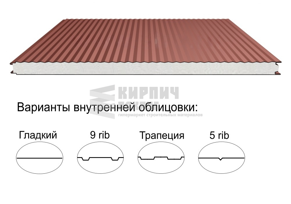 Строительный материал, имеющий трёхслойную структуру, состоящую из двух листов металла и слоя утеплителя между ними.